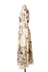 Robe en coton imprimé dans les tons de bordeaux de motifs fleuris