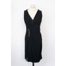 CHRISTIAN DIOR BOUTIQUE X JOHN GALLIANO - 2000's ROBE drapé en crêpe viscose noir ornée de boutons bombés perlés T. 38