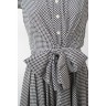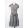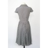 CHRISTIAN DIOR BOUTIQUE X JOHN GALLIANO - 2000's ROBE en crêpe de soie écru imprimée de pois marine, corsage boutonné signé avec effet de pans noués à la taille, jupe à godets T. 38