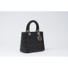 SAC "LADY DIOR" MM en cuir matelassé cannage noir, garnitures en métal argenté