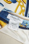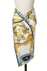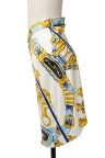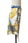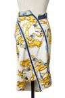 Jupe portefeuille en soie imprimée dans les tons de doré et bleu ciel