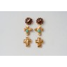 CHRISTIAN LACROIX TROIS PAIRE de BOUCLES D'OREILLES en métal doré, perles, strass et divers