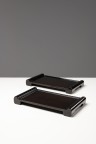 Paire de plateaux de style chinois Teck noirci laqué 9 couches Chacun monogrammés "CL" au revers 35 x 21 x 4 cm (chaque) Dans leur emballage d'origine.