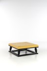 Galicia Table basse Cuir et chêne teinté Édition Liaigre Étiquette de l'éditeur sous l'assise Modèle créé en 2003 H 45 × L 109 × P 109 cm
