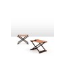 Christian Liaigre (1943-2020) Bazane Paire de tabourets pliants Chêne grand brillant et cuir Date de création : 1998 H 45 × L 60 × P 45 cm