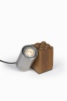 Lampe spot - Pièce unique Bois et acier Monogrammée Modèle créé vers 1980 Spotlamp - Uniek stuk Hout en staal Gemonogrameerd Model ontworpen rond 1980 H 11,5×L 13×P 10cm