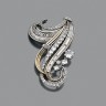 Clip volute en platine (850‰) et or gris 18k (750‰) orné de diamants de taille ancienne de forme coussin, ronds, carré, triangle et ...
