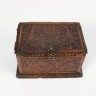 Coffret en bois de Sainte-Lucie sculpté toutes faces en bas-relief. Faces à décor de branches fleuries, couvercle avec monogramme entrelacé surmonté d'une couronne de marquis et accosté de deux grues sur un tertre, fond à décor de fleurettes ; bordure moulurée sculptée de feuillage ; charnières gravées et découpées, anneau de tirage, plaque de serrure en laiton. Nancy, atelier des Bagard, XVIIIe siècle Hauteur : 9,5 cm - Largeur : 12,1 cm - Longueur : 17,4 cm (accidents et manques)