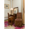 Tocador con espejo, dos sillas tapizadas, lámpara de sobremesa y mesilla