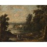 École Flamande du XVIIIe siècle, suiveur de Simon Duarte Paysage de rivière au château et aux promeneurs Toile Trace de signature en bas à droite 34 × 41,5 cm