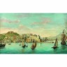 École Napolitaine du XIXe siècle Vue du Vésuve depuis le château de San Martino, Vue du Vésuve depuis Darsena Aquarelles sur papier Signées en bas à doite : Glp 1849 Annotées sur le montage : Veduta di S.Martino castel del ovo e del Vesuvio Napoli 1849; Veduta della Darsena e il Vesuvo Napoli 1849 45,5 × 74 cm (à vue)