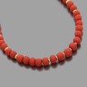 Collier composé de boules facettées de corail en chute, viroles et fermoir olive en or jaune 18k (750‰). Travail du XIXe siècle. Longueur : 42 cm Poids brut : 58,4 g