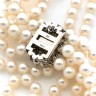 Collier de 197 perles de culture de diamètre égal disposées sur trois rangs. Fermoir en "8" en or gris serti de saphirs, diamants et turquoises cabochon Diamètre des perles : 7,36 mm Poids brut : 120,6 g