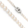 Collier de 83 perles fines en chute, fermoir en or gris 18k (750‰) et diamants.