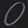Collier deux rangs de 55 et 60 boules de jade de couleur mauve, en chute, le fermoir en or gris 18 k (750°/oo) partiellement orné de petits diamants ronds taillés en rose. Diamètre des boules : 6.00/6.50 à 8.00/8.50 mm Longueur : 50 cm Poids brut : 86 g Vendu au profit de l'Ordre de Malte.