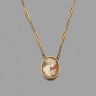 Collier en or jaune 18k (750‰) retenant un pendentif ovale orné d'un camée sur coquillage "Portrait de femme". Travail du XIXe siècle (transformation). Poids brut : 13,6 g