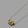 Collier en or jaune 18k (750‰) retenant un pendentif papillon, les ailes (articulées) ornées d'émeraudes rectangulaires et de diamants taillés en rose, deux rubis pour les yeux et une perle probablement fine pour le corps.