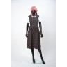 ROBE-TABLIER en coton noir à pois rose, effet de col claudine double