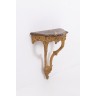 Console d'applique en bois doré, à deux montants et décor de cartouche, feuillages, fleurs et agrafes ; dessus de marbre rouge des Flandres (restauré) ; (importantes restaurations). En partie d'époque Louis XV. H81 x L56 x P 33 cm