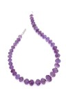 Collier en or blanc 18k (750‰) composé de 40 boules d'améthyste taillées en briolette, séparées au centre par six rondelles serties de diamants taille brillant ainsi que le fermoir