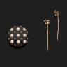 Coulant de foulard en or jaune 18k, 750‰ émaillé noir, parsemé de demi-perles et de diamants taillés en rose.On y joint deux épingle...
