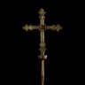 Croix de procession en laiton ciselé et gravé à décor du tétramorphe et de rinceaux feuillagés âme en bois H:71 x L:41 x P:3 cm. ( accidents et manques )