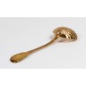 Cuillère à saupoudrer en vermeil à filets et contours, monogramme dans un blason. Epoque Restauration. Poinçon 1819-1839 et M.O. : M.L.T (?) Poids : 60gr