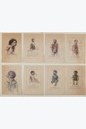 Gouache, pastels gras de couleur et stylo à bille sur 8 feuillets manuscrits fixés sur carton
