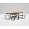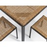 Danny Ho Fong (XXe) Table d'extérieur et six tabourets Fer forgé et rotin Date de création: années 1960 H 66×L 186×P 76cm (table) H 40,5×L 38×P 38cm (tabouret)