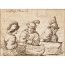 Dans le goût de Giovanni Francesco Barbieri dit Le Guerchin (Cento 1591-Bologne 1666) Les joueurs Plume et encre brune 24,5 × 33,5 cm (Rousseurs, pliure au centre)