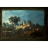 Dans le goût de Jean PILLEMENT Repos de paysans sur un tertre devant une ferme dans un encadrement simulé Panneau préparé 18,5 x 26 cm Soulèvements
