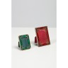 Deux cadres en émail guillochés vert ou rouge à écoinçons. Travail étranger Poids brut : 289 gr. environ 11,5 x 9 cm 8,5 x 6,5 cm Provenance : Collection Hélène Rochas, Christie's Paris, 27 septembre 2012, lot 167