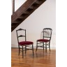 Deux chaises légères en bois noirci, dossier ajouré à barreaux ou colonnettes. Garniture de velours bordeaux. Fin XIXe siècle H 85 et H 88 cm