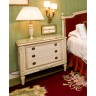 Deux commodes en bois laqué, 68x74x40 cm, deux lampes, H 60 cm Pareja de dos comodas de tres cajones en blanco y dos lámparas de sobremesa