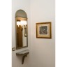 Deux consoles, dessus marbre, 45x47x23 cm, deux miroirs avec appliques incorporées, 122x35 cm Pareja de consolas en gris con apliques
