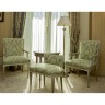 Pareja de butacas, banqueta con respaldo, velador, lampara de pie y cortinas