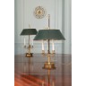 Deux lampes de bouillotte en bronze doré à trois bras de lumière, abat-jour coulissant en tôle verte. Style Louis XVI H 64cm