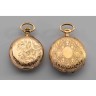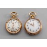 Deux montres de gousset en or jaune, l'une au fond gravé de motifs floraux ( poids brut : 19.7 g.), l'autre au fond gravé fleuri dans un quadrillage ( poids brut : 21.7 g.)