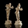 Deux musiciens l’un violoniste, l’autre flûtiste montés sur socle Ivoire XIXème siècle H: 20 cm ( accidents ) Provenance : Succession de M D.