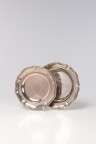 Deux plats en argent ciselé, à bords chantournés, l'un porte une armoirie, l'autre est chiffré