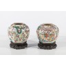 Deux pots à gingembre en porcelaine polychrome à décor de scènes de cour. Dans le style de la famille rose, Chine. H 29 cm. (Accidents et manques)