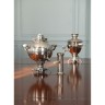 Deux samovars quadripodes en métal argenté, prises de préhension en os.