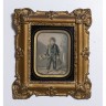 Deux sous-verres représentant des enfants, cadre en bois doré à décor rocaille. 31 ×27,5cm 14 × 11 cm (à vue)