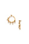 Paire de créoles en or jaune 18k (750‰) retenant en pampille cinq diamants taille brillant sertis clos Signées, numérotées 11025, gravées 750 Diamètre : 2 cm Poids brut : 8,2 g
