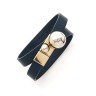 DIOR - Collection "Tribale" BRACELET double en cuir marine, fermoir aimanté en métal doré et argenté Signé Env. 33 cm Parfait état, pochette et boîte d'origine