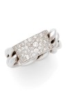 Collection "Gourmette, GM" Bague souple à maillons d'or blanc 18k (750‰) ornée au centre d'un pavage de diamants taille brillant Signée, numérotée DO 4034, gravée 750 -54, poinçons de Maître Orfèvre et de titre Tdd : 52 Poids brut: 12,6 g
