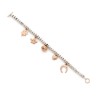 DoDo Bracelet "Rondelle" en argent (925‰) retenant cinq charms (fer à cheval, coeur, clochette, couronne, trèfle à quatre feuilles) en or rose 9k (375‰) Signé, poinçonné, gravé 925 et 375 Longueur : 17 cm Poids 29,5 g