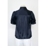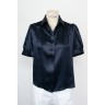 CHEMISETTE en satin de soie anthracite, boutons nacrés signés