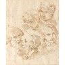 Donato Creti (Crémone 1671-Bologne 1749)Feuille d’étude avec cinq portraitsPlume et encre brune23 × 18,5 cm(Rousseurs, petits trous ...