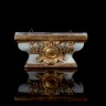 Doucine en bois peint et doré à cartouche feuillagé XVIIIème siècle ( accidents) >15 x 34 cm Provenance : Succession de M D.